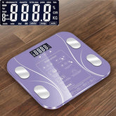 BodyIQ™ smart scale in black with feet on the platform next to the companion app Woman weighing on BodyIQ™ smart scale with 18-metric icons for scientific weight management BodyIQ™ smart scale USB charging port, months of use per charge; charge via adapter, laptop, socket or power bank Close-up of BodyIQ™ smart scale LCD backlit display for clear day or night reading BodyIQ™ precision smart scale with intelligent analysis and multi-user support, sleek tempered-glass design body-composition scale showing 15+ data points Annotated BodyIQ™ scale highlighting LED screen, touch buttons, tempered glass and alloy electrodes with usage steps BodyIQ™ smart scale colors, black, pink and purple, with four electrodes and digital display. Top view of black BodyIQ™ smart scale with reflective tempered glass and four bio-impedance electrodes Top view of pink BodyIQ™ smart scale—tempered glass, four electrodes, backlit LCD. Purple BodyIQ™ smart scale on wood floor with enlarged icon display for body metrics smart body scale wifi bluetooth body composition analyzer